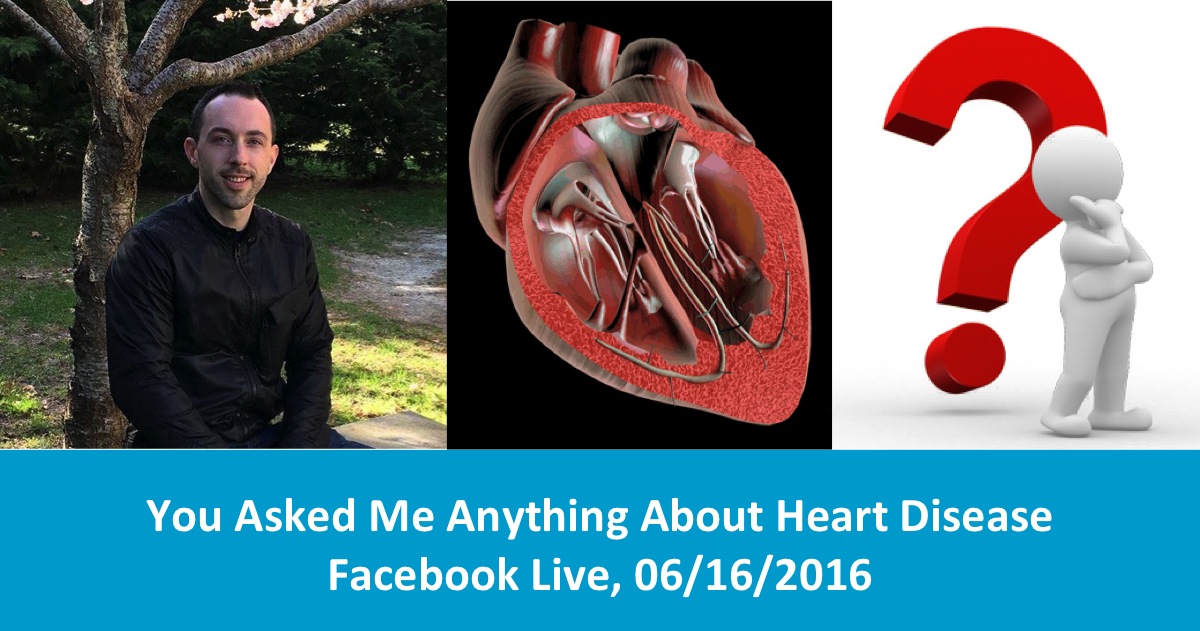 This past Thursday, we all showed up live on Facebook so you could ask me anything about heart disease. Here's the video, and the audio recording as a podcast.
