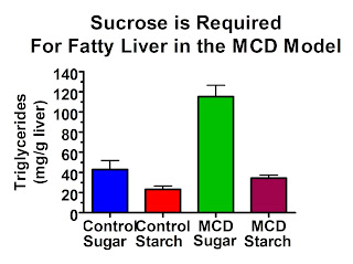Conversely, much more recent research has shown that sucrose is a requirement for the development of fatty liver disease in a methionine- and choline-deficient (MCD) model. The MCD model of fatty liver disease is the oldest and most widely used dietary model. The MCD model produces not only the accumulation of liver fat, but massive inflammation similar to the worst forms of fatty liver disease seen in humans. What no one ever mentions about this diet is that it is primarily composed of sucrose and it's fat is composed entirely of corn oil!